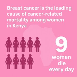 Breast cancer is the leading cause of cancer-related mortality among women in Kenya, with 9 women dying every day from the disease. It accounts for one in every four cancers diagnosed among Kenyan women.